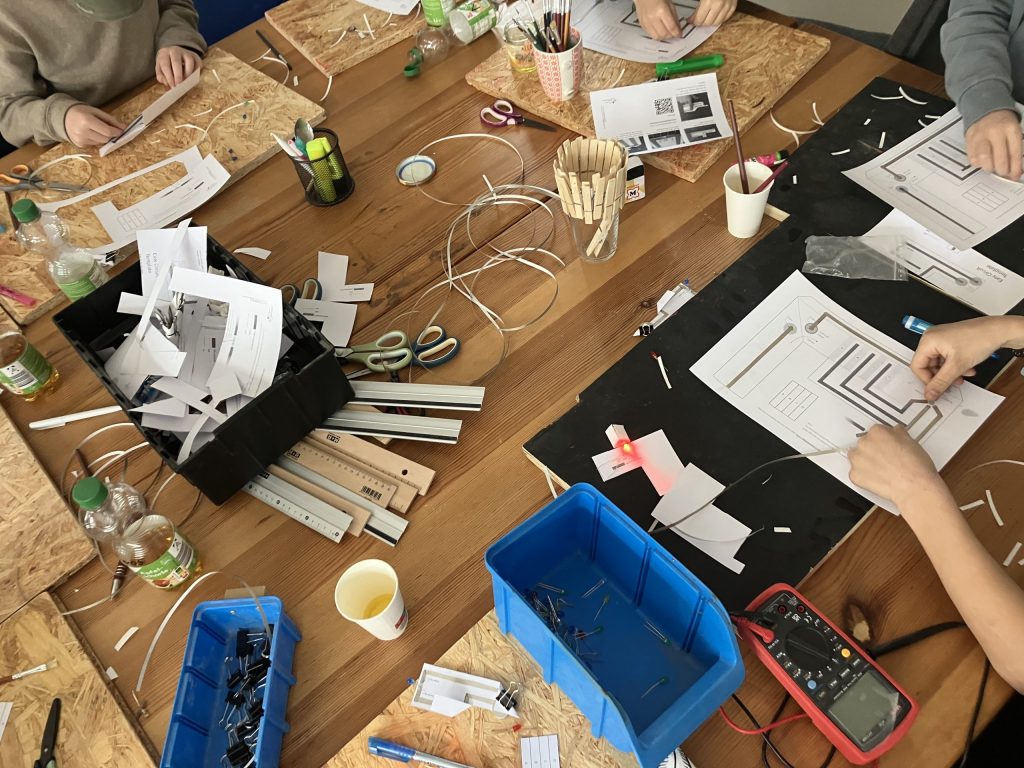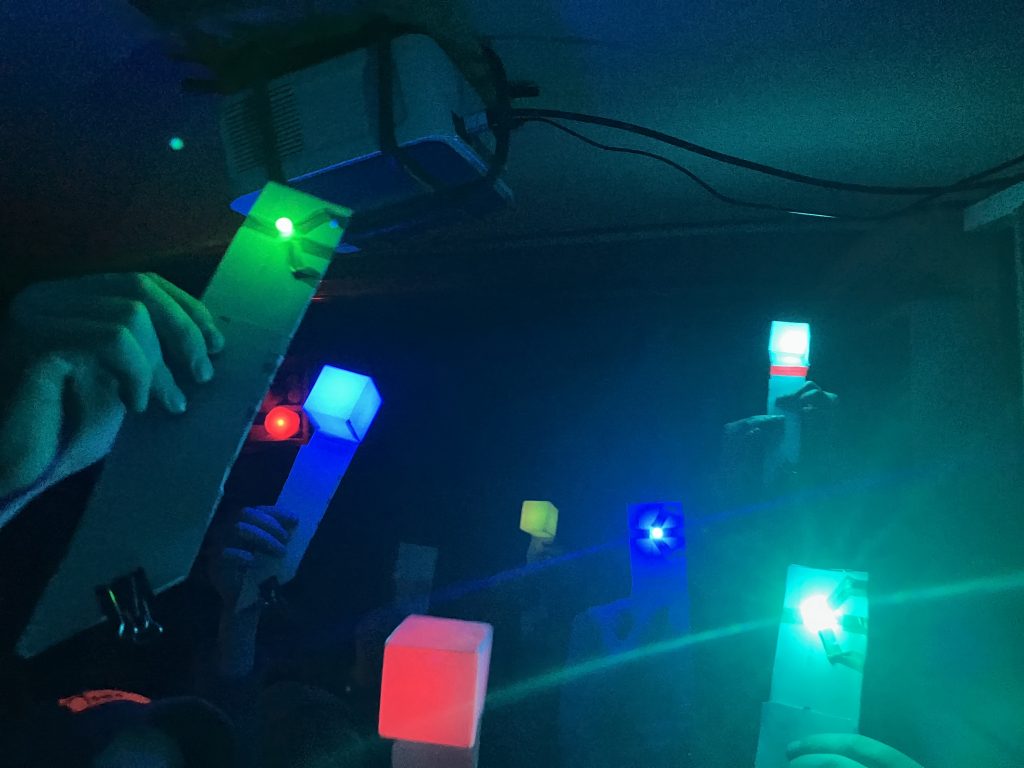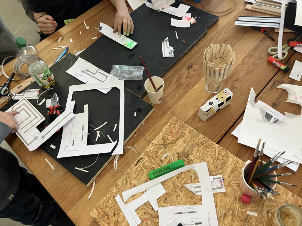 Mit etwas Papier, leitfähigem Klebeband und RGB-LEDs haben alle ihre eigenen interaktiven Leuchtwürfel gebastelt. Das Coolste daran? Die Würfel wechseln ihre Farbe, wenn man sie an verschiedenen Stellen berührt!